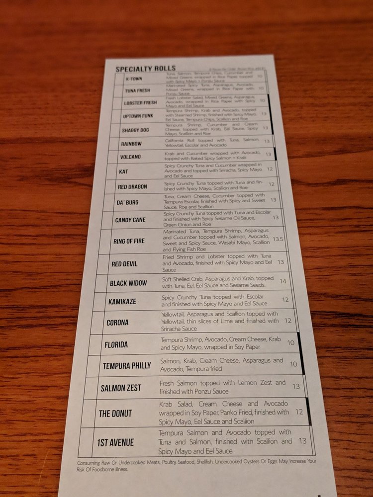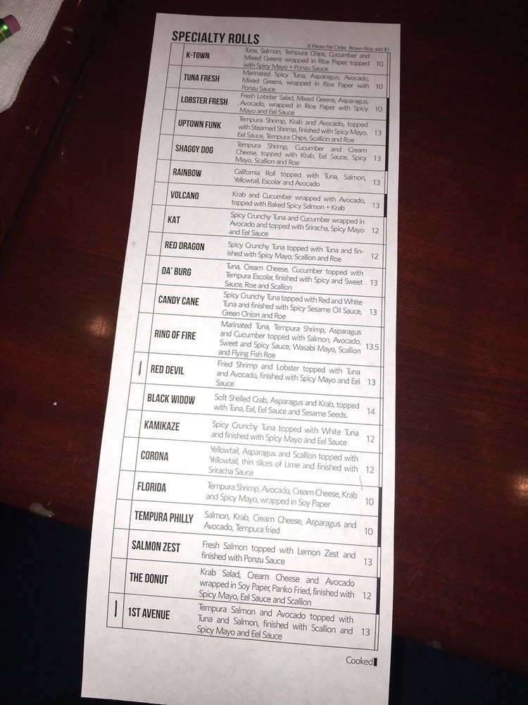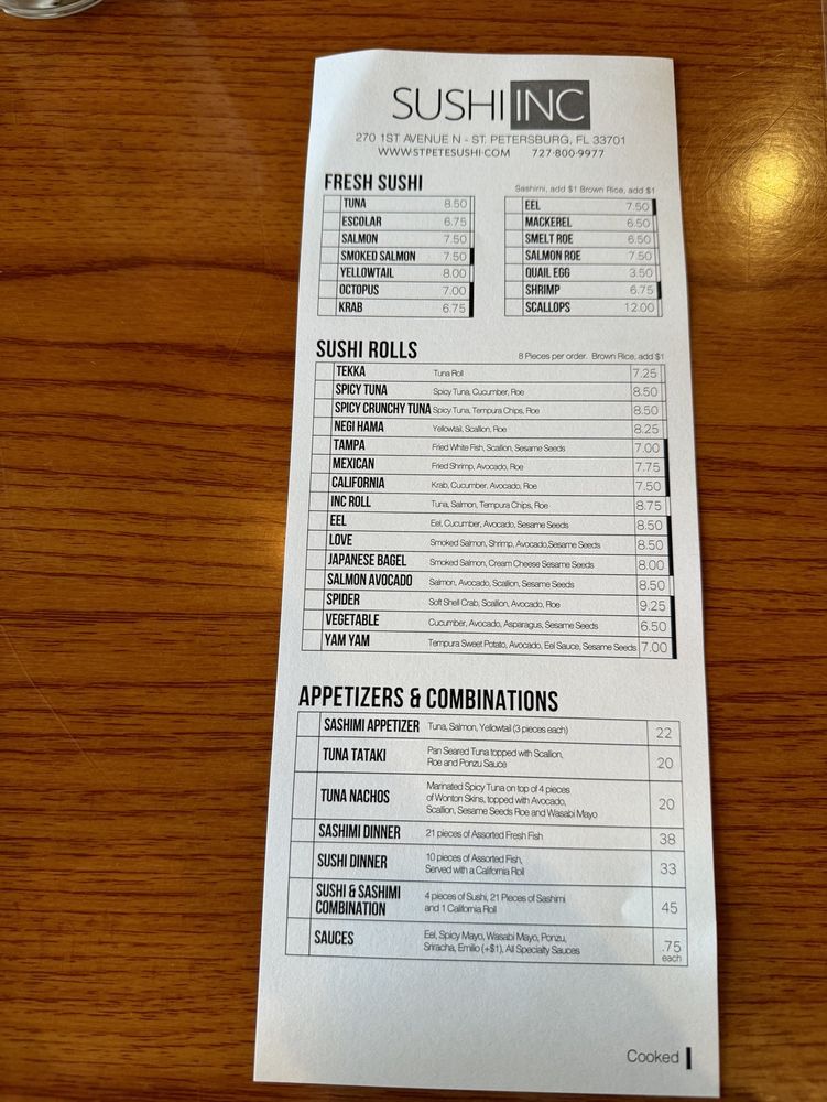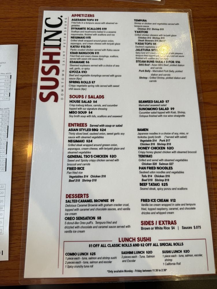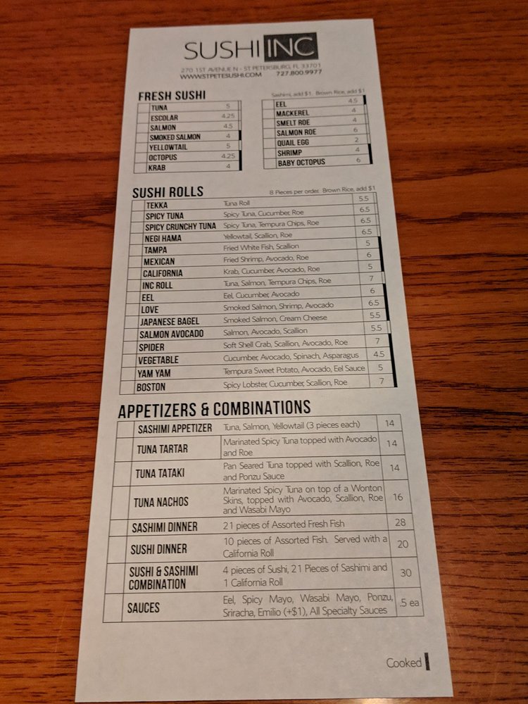 Sushi Inc Menu
